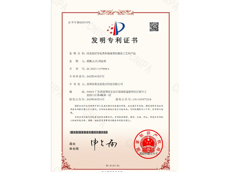 同表面层导电黑和绝缘黑的制备工艺和产品发明专利证书